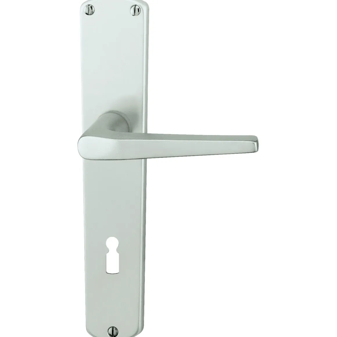 Die Alpertec Langschildgarnitur Phil-LS BB F1 72 mm ist die perfekte Wahl für alle, die eine stilvolle und hochwertige Türbeschläge suchen. Mit ihrer edelstahlfarbenen Oberfläche und dem abgerundeten Schild verleiht sie jeder Zimmertür ein elegantes Aussehen.