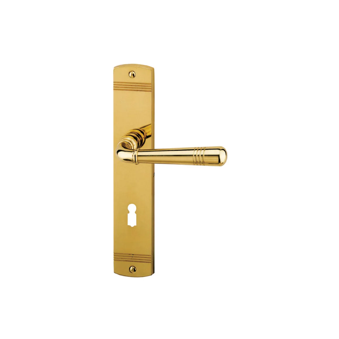 Die Alpertec Langschildgarnitur Sale-LS poliert ist eine elegante Wahl für jeden Raum in Ihrem Haus oder Ihrer Wohnung. Mit ihrem edlen Design aus Messing und der glänzenden Oberfläche wird sie sicherlich zum Blickfang an jeder Tür. Darüber hinaus bietet sie eine einfache Installation dank des im Lieferumfang enthaltenen Befestigungsmaterials sowie eine hohe Qualität durch das verwendete Material Messing.