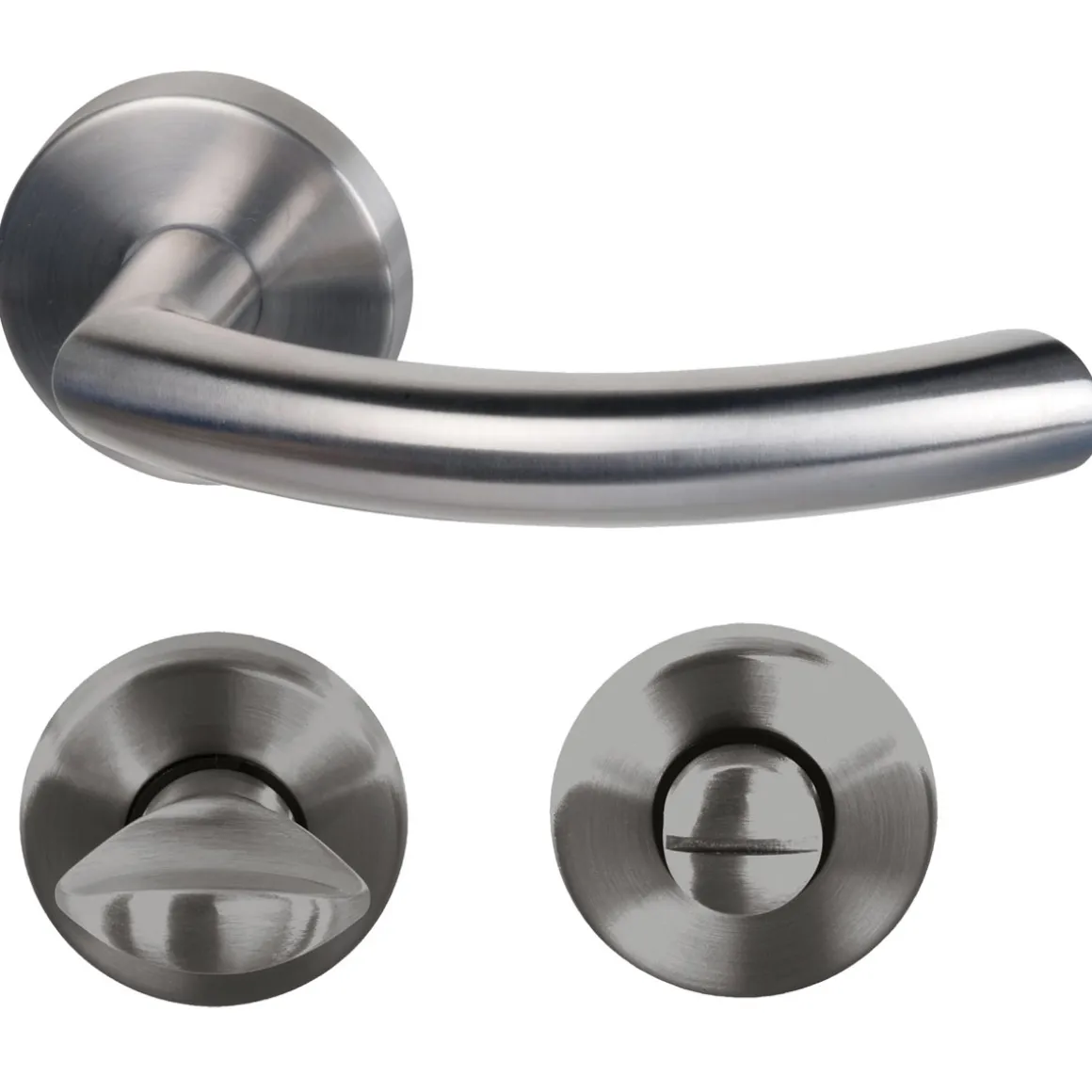 - Inklusive 1 Drückerpaar, 2 Drückerrosetten, 1 WC Rosettenpaar und 4 Durchzugsschrauben