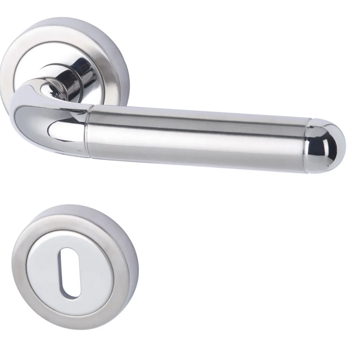 Die Alpertec Rosettengarnitur New York II-R ES poliert/ES satiniertBB eignet sich ideal für alle Kunden, die auf der Suche nach modernen und stilvollen Türbeschlägen sind. Sie passt perfekt zu jeder Innentür oder Zimmertür.