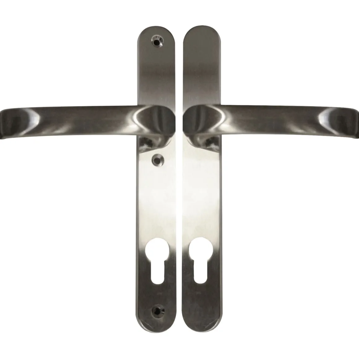 Diese Garnitur eignet sich perfekt für Kunden, die auf der Suche nach einer hochwertigen und eleganten Lösung für ihre Haustür sind. Sie passt zu modernen Einrichtungsstilen und verleiht jeder Tür das gewisse Etwas.