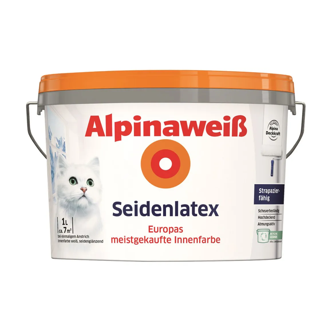 Alpina Alpina weiß Seidenlatex 1 L – Perfekt für strapazierfähige Wände und Decken