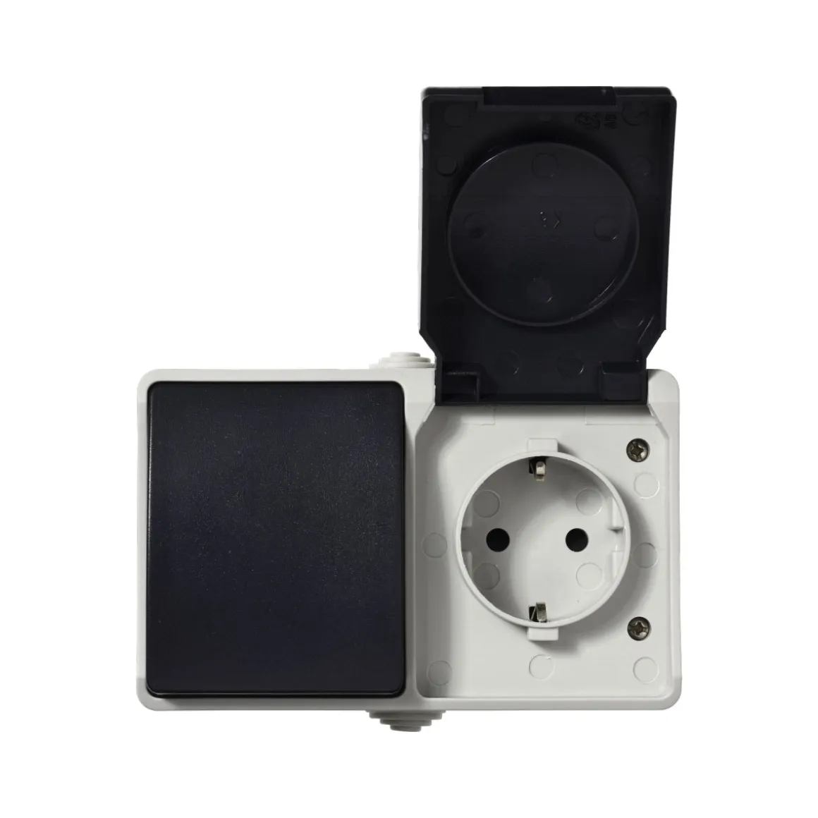 Aufputz-Schalter/Steckdosenkombination Basic Feuchtraum 2-fach grau