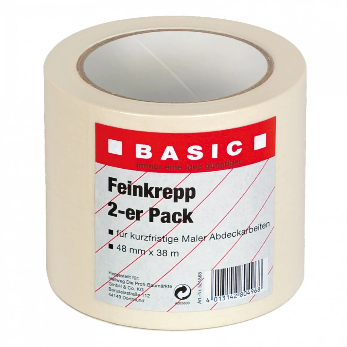 Mit dem Basic Feinkrepp 2er Pack erhalten Sie ein hochwertiges Klebeband, das sich perfekt zum präzisen Abkleben von Farbkanten und anderen Oberflächen eignet. Entdecken Sie jetzt die vielseitigen Einsatzmöglichkeiten!