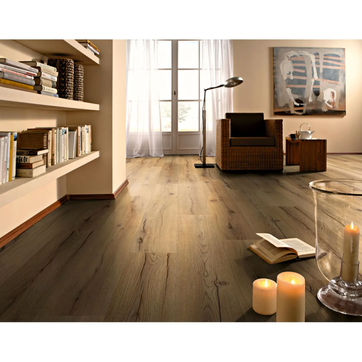 Der Basic Laminatboden Century Oak beige eignet sich ideal für Kunden, die einen natürlichen und robusten Bodenbelag suchen. Besonders im Wohnraum sorgt er für eine gemütliche Atmosphäre.