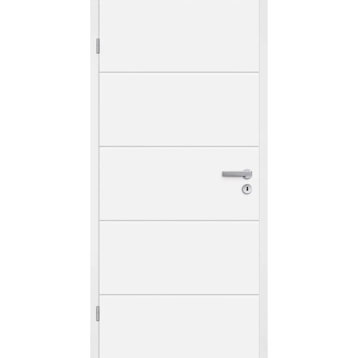Mit dieser „Borne Tür“ im Trend-Design mit Weißlack-Oberfläche setzen Sie individuelle Akzente in Ihren Räumen. Die mehrschichtige Lackoberfläche wirkt edel und elegant und ist durch den UV-gehärteten, umweltfreundlichen Speziallack besonders langlebig. Die abgebildete Drückergarnitur und Zarge sind nicht im Lieferumfang enthalten.