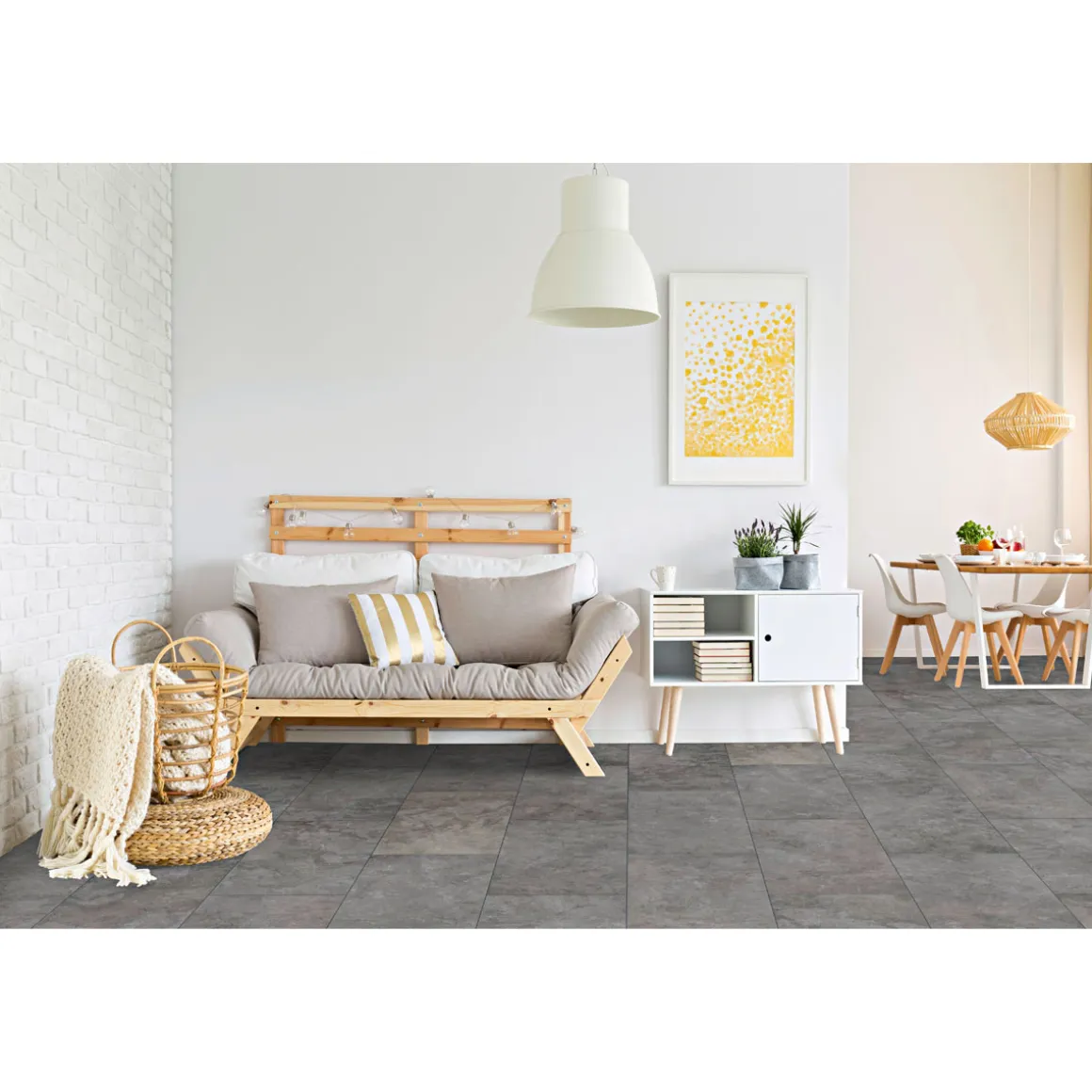 Nicht nur für Leisetreter ein Gewinn: Vinylboden ist ein Chamäleon unter den Belägen und passt sich vielen Wohnstilen nahtlos an. Durch sein geschmeidiges und elastisches Material fühlt er sich fußwarm an und dämmt den Schall. Nicht umsonst wird er gern in Arztpraxen oder Hotels verwendet: Er lässt sich wunderbar reinigen und überzeugt selbst Allergiker.