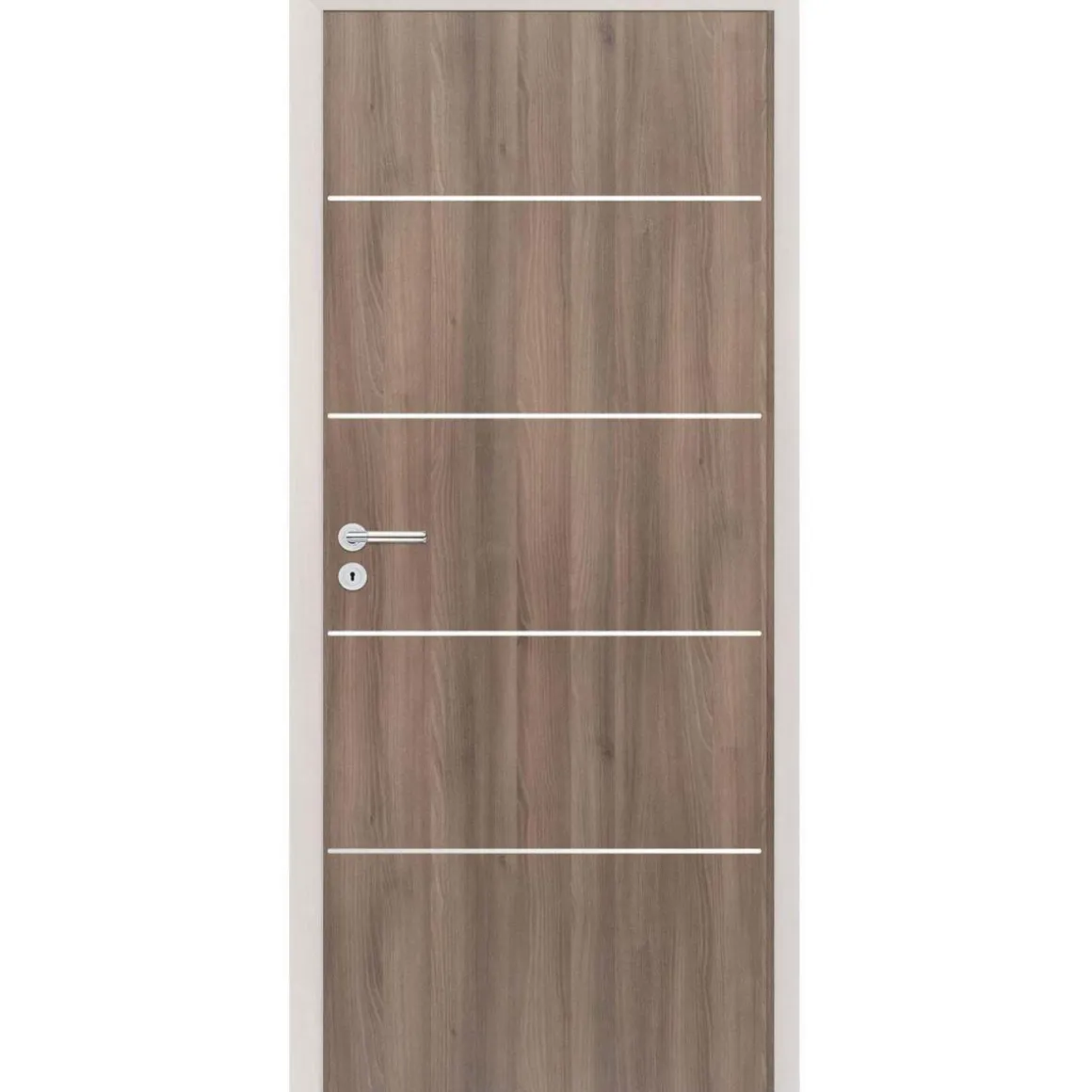 Die Classen Zimmertür Discovery Esche graphit mit Anschlag links ist die perfekte Wahl für alle, die eine stilvolle und hochwertige Tür suchen. Mit ihrer braunen Grundfarbe und dem modernen Design fügt sie sich perfekt in jeden Raum ein.