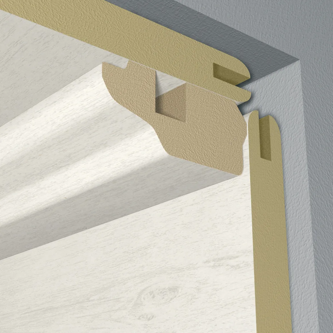 Die Deckenabschlussleiste sichert mit ihrem klassischen Profil einen sauberen Abschluss für Wand und Decke. Das Dekor ist farblich auf die Specht Paneele abgestimmt. Die Leiste kann mit Hilfe von Spezialkrallen unsichtbar befestigt werden. Die Beschichtung der Deckenleiste ist robust und langlebig.