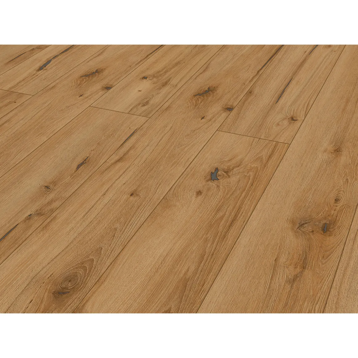 - HDF-Trägerplatte mit Quellvergütung schützt den Boden vor Feuchtigkeitsschäden langfristig.