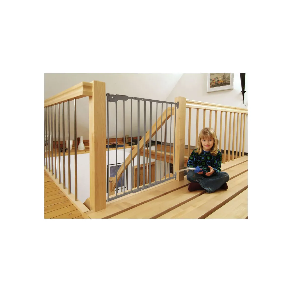 Das Kindersicherheitsgitter „Lars“ aus pulverbeschichtetem Metall sichert Türen, Treppen und Durchgänge, undschützt Kinder somit vor Stürzen und Verletzungen. Damit werden bei kleinen Kindern Stürze verhindert und diese vor Verletzungen geschützt. Durch den Einhand-Sicherheitsgriff ist das Öffnen und Verriegeln für Erwachsene problemlos möglich. In der Breite kann das Sicherheitsgitter zwischen 75 und 115 cm nach Bedarf variabel eingestellt werden.