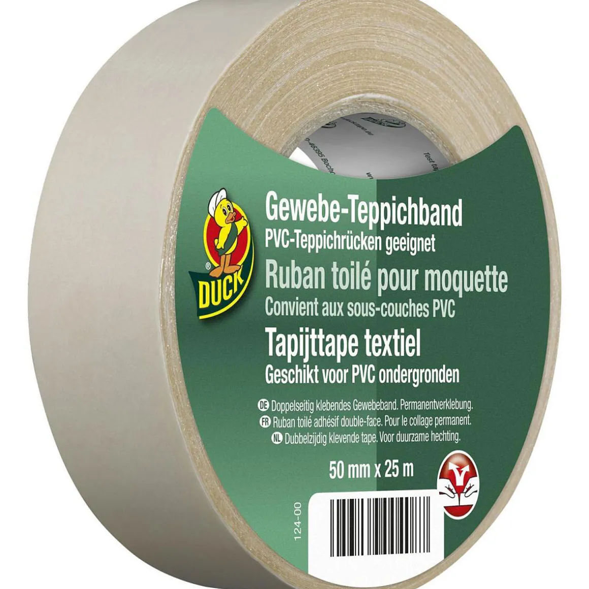Mit dem Duck Duck Gewebe-Teppichband können Sie Ihren Teppich sicher und einfach befestigen. Das 50 mm breite Band ist perfekt für den Einsatz im Innenbereich geeignet und hat eine Länge von 25 m.