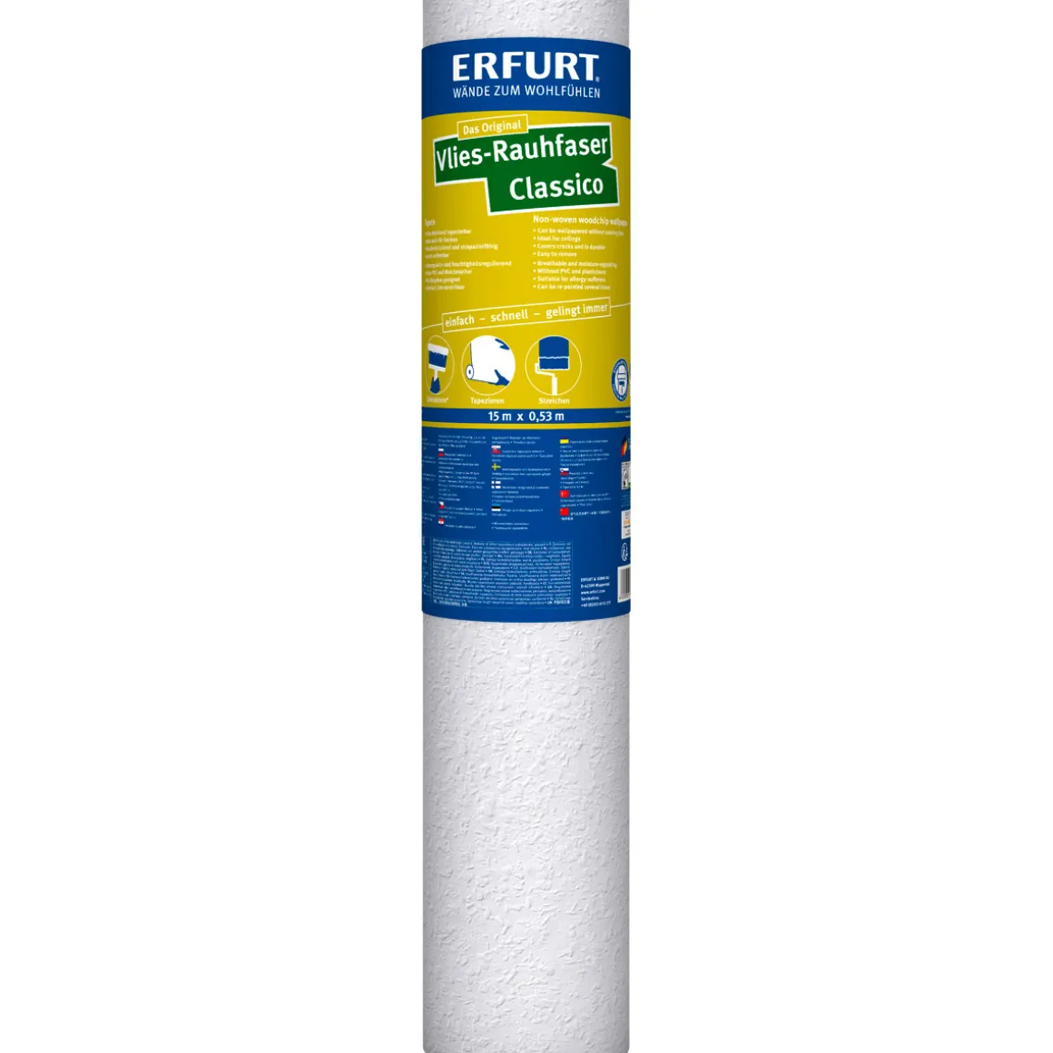 Die ERFURT Erfurt Vlies Rauhfaser Classico ist ideal für alle Kunden geeignet, die ihre Wände schnell und einfach gestalten möchten. Auch Allergiker profitieren von der schadstoffarmen und allergikerfreundlichen Tapete.