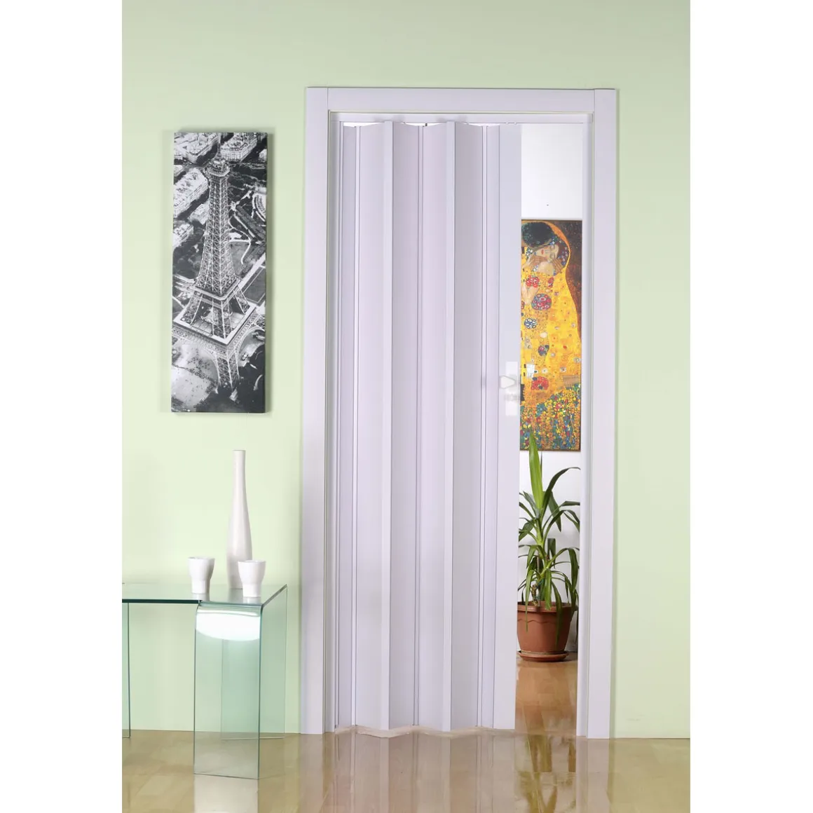 Unsere Kunststoff-Falttür Modell „Luciana“ – die moderne Alternative in verschiedenen Farben. Hochwertig bedruckte Varianten für holzähnliche Oberflächen oder in weiß-Pastell, die in jedes Ambiente passen. Falttüren können in Türbereiche mit und ohne Zargen eingebaut werden und eignen sich damit perfekt für alle Bereiche im Wohn- und Gewerbebereich. Hochwertige Faltmechanismen ermöglicht ein geräuschloses Öffnen und Schließen. 10 mm-Hohlkammerprofile geben der Tür gute stabile Eigenschaften, die ein langlebiges Produkt ausmachen.
