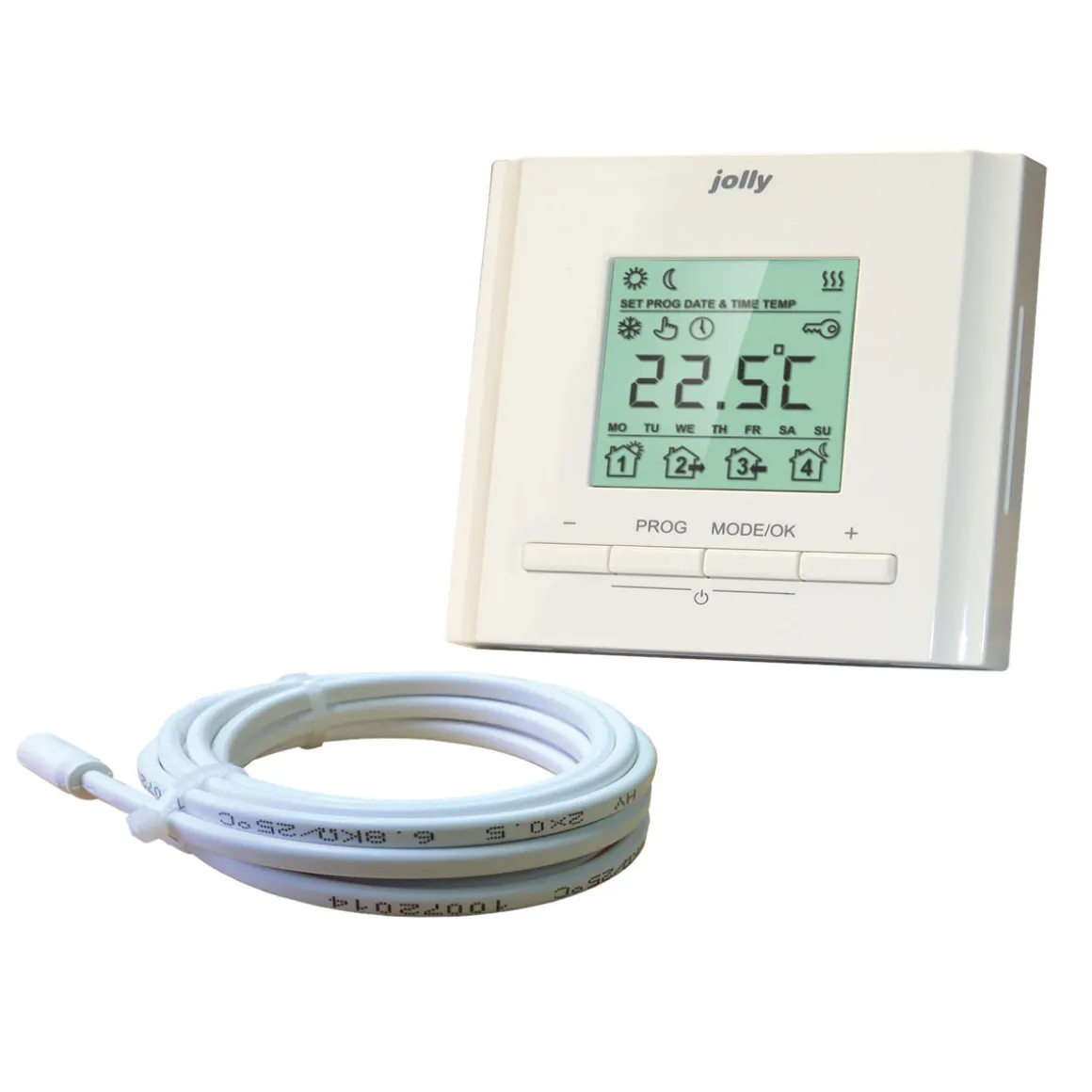 Der Jollytherm Jollytherm Thermostat Comfort eignet sich perfekt für alle Kunden mit einer Top-Therm Bodenheizung. Mit diesem digitalen Uhrenthermostat können Sie Ihre Fußbodenheizung bequem steuern und haben immer die volle Kontrolle über die Temperatur in Ihrem Zuhause.