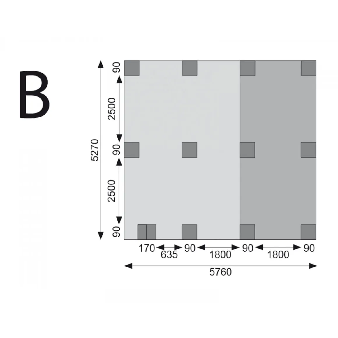 Der Doppelcarport „Eco 2“ Variante B hat ein Außenmaß von 527×576 cm und ein Eigengewicht von 460,6 kg.Der Karibu Doppelcarport „Eco 2“ ist aus kesseldruckimprägniertem Massivholz gearbeitet und somit besonders witterungsbeständig und langlebig. Insgesamt stützen 12 stabile 9×9 cm Pfosten die Dachplatte aus lichtundurchlässigem Kunststoffwellenprofil ab. Die grauen PVC Trapezplatten verfügen über eine Stärke von 0,8 mm und werden ohne Beschläge geliefert. Der Carport hat ein Innenmaß von 509×558 cm mit einer Einfahrtshöhe von 206 cm und einer Einfahrtsbreite von jeweils 250 cm. Die Firsthöhe liegt bei 229 cm, der umbaute Raum bei 63,4 m³. Die maximal zulässige Schneelast liegt bei 75 kg/m². An den Seiten befindet sich ein Dachüberstand von jeweils 18 cm, hinten beträgt der Dachüberstand 23 cm und im vorderen Bereich liegt er bei 81 cm.Der Doppelcarport “Eco 2“ inkl. einem Einfahrtsbogen bietet Platz für zwei Fahrzeuge und schützt diese vor schädlichen Witterungseinflüssen.