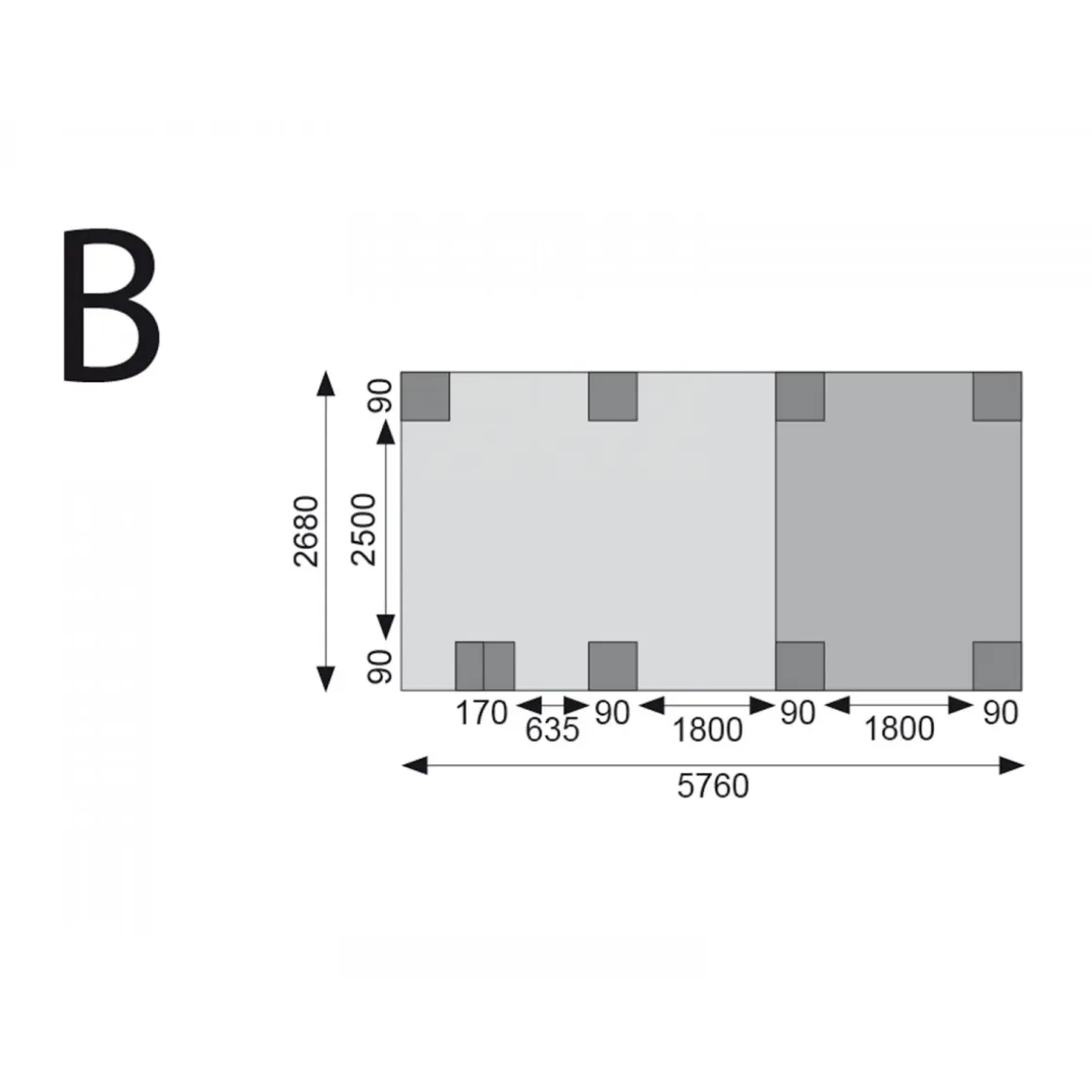 Der Einzelcarport „Eco 2“ Variante B ist ein moderner und geräumiger Unterstand für einen Pkw.Der Einzelcarport „Eco 2“ überzeugt durch seine hochwertige Verarbeitung und das zeitlose Design. Mit einer Einfahrtsbreite von 250 cm und einer Einfahrtshöhe von 206 cm lässt sich das Auto bequem und sicher einstellen. Das Außenmaß des Carports beträgt 268×576 cm, das Innenmaß 250×558 cm. Der Einzelcarport besitzt einen Überstand hinten von 23 cm, an den Seiten jeweils von 18 cm und vorne von 81 cm. Der Carport ist aus kesseldruckimprägniertem Massivholz hergestellt und aufwändig verarbeitet. Die Dacheindeckung besteht aus lichtundurchlässigem Kunststoffwellenprofil. Die Eindeckung wird mit 0,8 mm starken, grauen PVC Trapezplatten vorgenommen und ohne Beschläge geliefert. Das Dach hält einer Schneelast von bis zu 75 kg/m² stand. Das Gesamtgewicht des Carports beträgt 286,6 kg.Der Einzelcarport „Eco 2“ inkl. einem Einfahrtsbogen überzeugt durch eine klassische und stilvolle Optik.