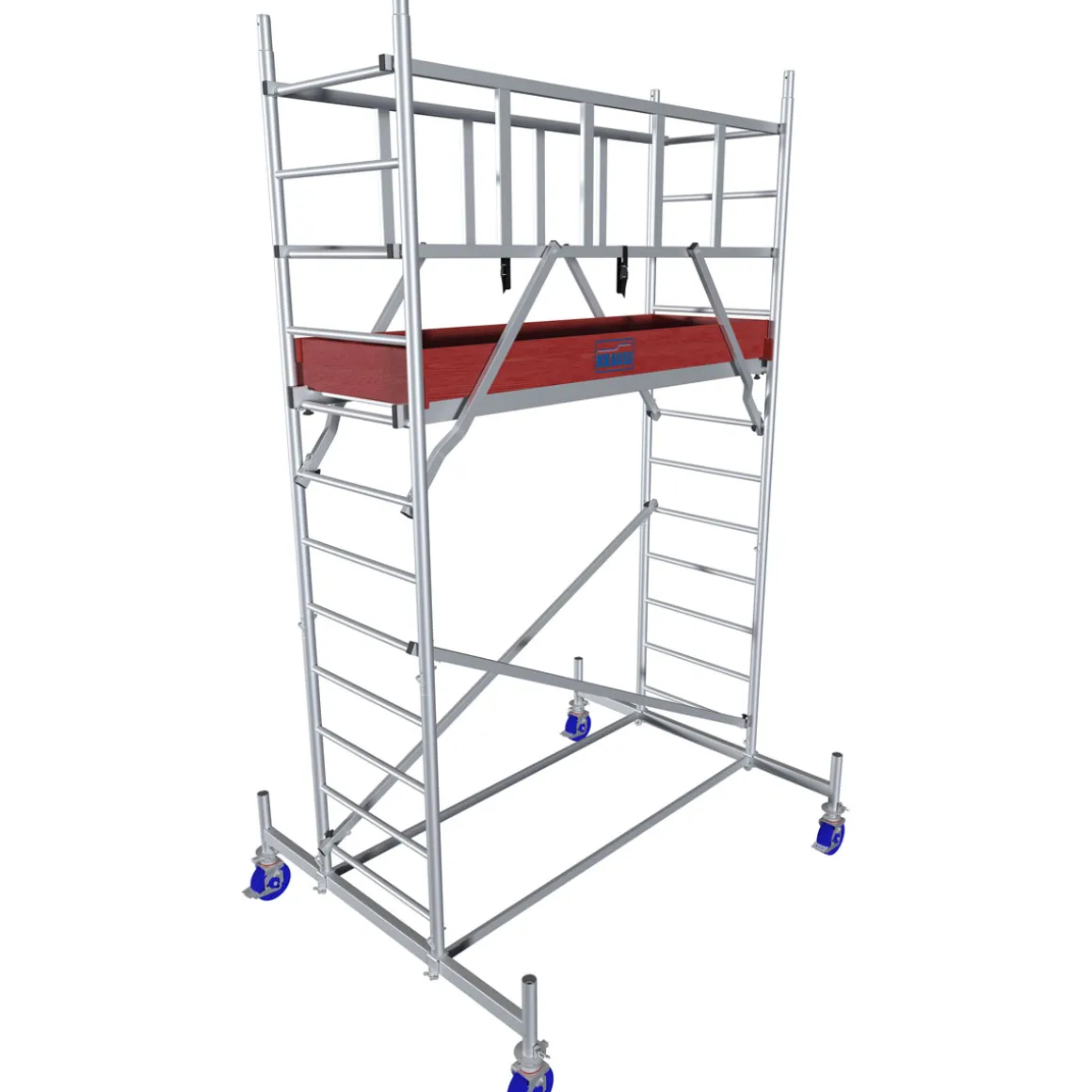 - Integrierte Bremsfunktion sorgt dafür, dass das Gerüst stabil an Ort und Stelle bleibt.