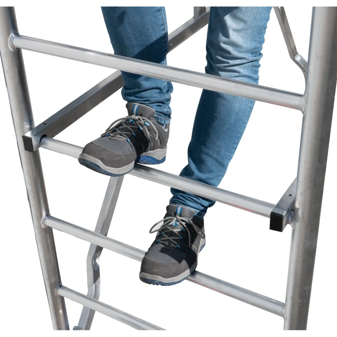 - Rutschfeste Sprossen sorgen für sicheren Stand auch unter widrigen Bedingungen wie Nässe