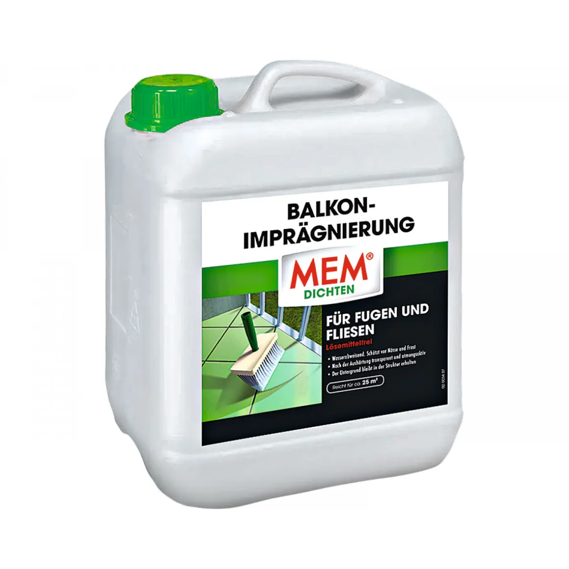 Die MEM Balkonimprägnierung schützt Ihre Terrasse oder Ihren Balkon zuverlässig vor Nässe und Frost. Mit einer niedrigviskosen Viskosität ist die Anwendung einfach und schnell erledigt. Die milchig-weiße Farbe trocknet farblos auf, sodass Sie keine Veränderung der Optik befürchten müssen.