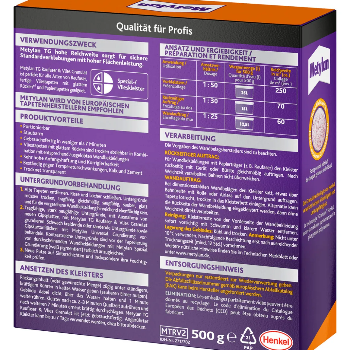 Metylan Metylan Tapetenkleister Raufaser & Vlies Granulat TG Hohe Reichweite 500 g
