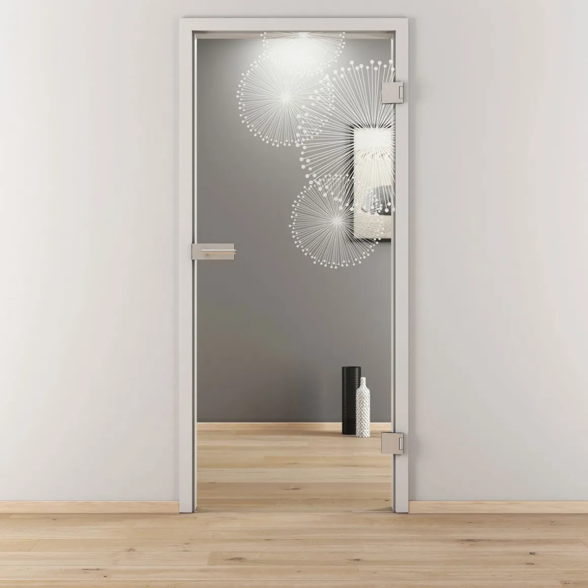 Sie suchen eine Tür, die nicht nur funktional ist, sondern auch ein echtes Design-Highlight in Ihrem Zuhause? Dann ist die Novadoors Glasdrehtür NOVA 507 klar genau das Richtige für Sie! Mit ihrer transparenten Optik und dem graphischen Muster bringt sie eine moderne und stilvolle Atmosphäre in jeden Raum. Diese hochwertige Drehtür aus Einscheibensicherheitsglas vereint Sicherheit und Ästhetik auf beeindruckende Weise. Die klare Farbgebung lässt Ihre Räume größer wirken und sorgt für ein helles Ambiente, während das graphische Dekor einen Hauch von Exklusivität verleiht. Machen Sie Ihr Zuhause zu einem Ort des Wohlfühlens mit dieser eleganten Glasdrehtür!