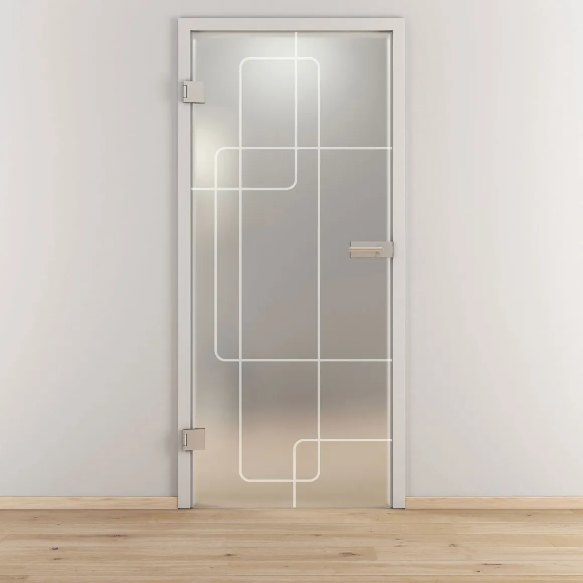 Verleihen Sie Ihrem Innenraum einen modernen Touch mit der Novadoors Glasdrehtür NOVA 553 mattiert! Diese Tür ist nicht nur ein funktionales Element, sondern auch ein stilvoller Hingucker. Mit ihrem graphischen Muster und der transparent-weißen Oberfläche fügt sie sich harmonisch in jedes Raumkonzept ein. Das hochwertige Einscheiben-Sicherheitsglas (ESG) sorgt dabei für Stabilität und Langlebigkeit. Ob im Büro oder zu Hause – diese Glastür bringt Licht und Eleganz in jeden Raum.