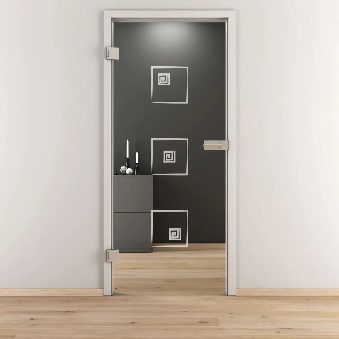 Verleihen Sie Ihrem Zuhause einen Hauch von moderner Eleganz mit der Novadoors Glasdrehtür NOVA 587. Diese hochwertige Drehtür aus Einscheibensicherheitsglas vereint zeitloses Design mit praktischer Funktionalität. Mit ihrer klaren Optik und dem mittig platzierten Dekorelement wird sie zum stilvollen Highlight in jedem Raum. Die Tür ist nicht nur ein echter Hingucker, sondern überzeugt auch durch ihre robuste Verarbeitung und Langlebigkeit. Ob als Verbindung zwischen Wohn- und Essbereich oder als elegante Lösung für andere Räume – diese Glastür setzt Akzente, die begeistern.