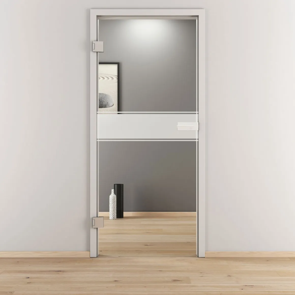Die Novadoors Glasdrehtür NOVA 593 klar ist die perfekte Wahl für alle, die ihrem Zuhause eine moderne und stilvolle Note verleihen möchten. Mit ihrer transparenten Optik und dem eleganten Streifen-Dekor bringt sie nicht nur Licht in Ihre Räume, sondern schafft auch ein Gefühl von Offenheit und Weite. Diese Glasdrehtür aus hochwertigem Einscheibensicherheitsglas überzeugt durch ihre robuste Verarbeitung und zeitlose Ästhetik. Sie werden begeistert sein, wie diese Tür Ihr Zuhause aufwertet!