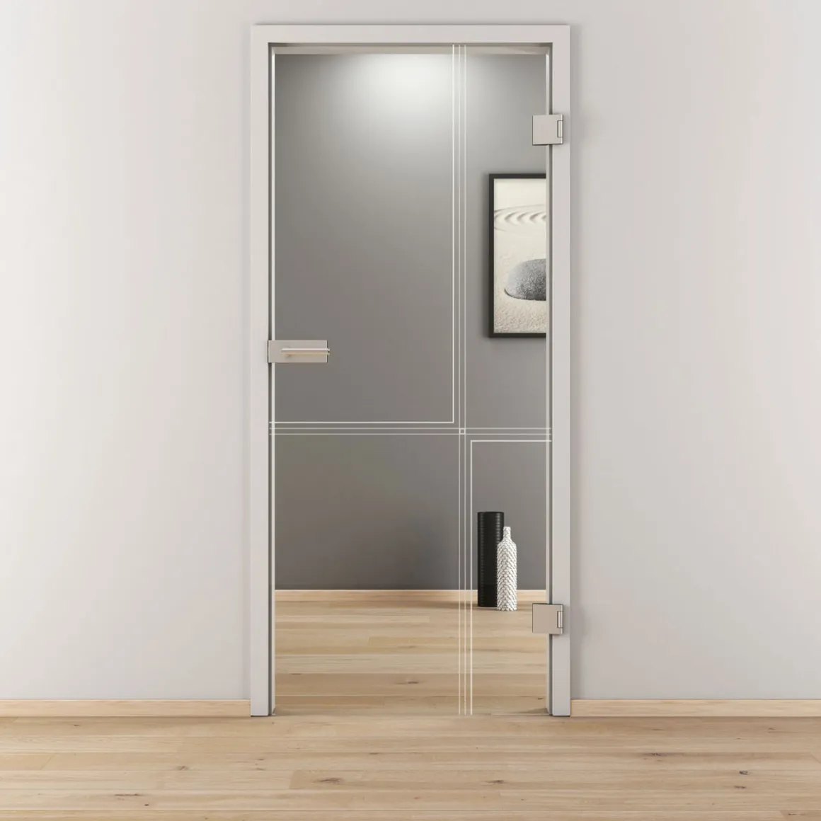 Die Novadoors Glasdrehtür NOVA 610 ist wie gemacht für alle, die Wert auf modernes Wohnen legen. Sie eignet sich besonders gut für lichtdurchflutete Räume oder Bereiche, in denen Transparenz gewünscht wird. Ob im Wohnzimmer als stilvoller Übergang oder im Büro als elegante Abtrennung – diese Tür fügt sich harmonisch in jede Umgebung ein. Dank ihres graphischen Musters wird sie zum Blickfang in Ihrem Zuhause. Wenn Sie also eine Kombination aus Ästhetik und Funktionalität suchen, dann sollten Sie nicht länger zögern!