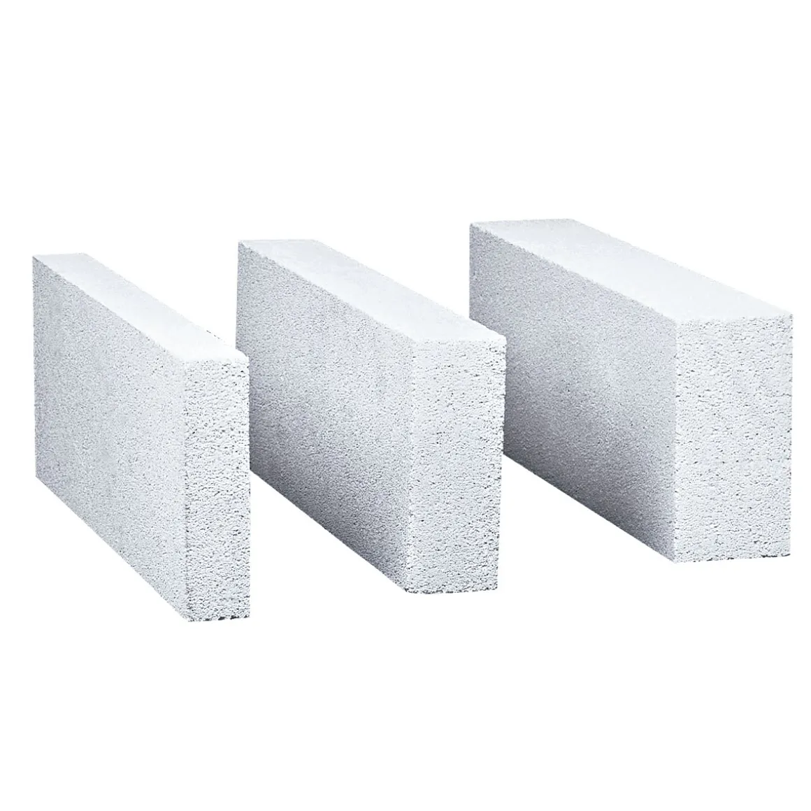 Der Porenbetonstein ist glatt und besteht aus Beton.