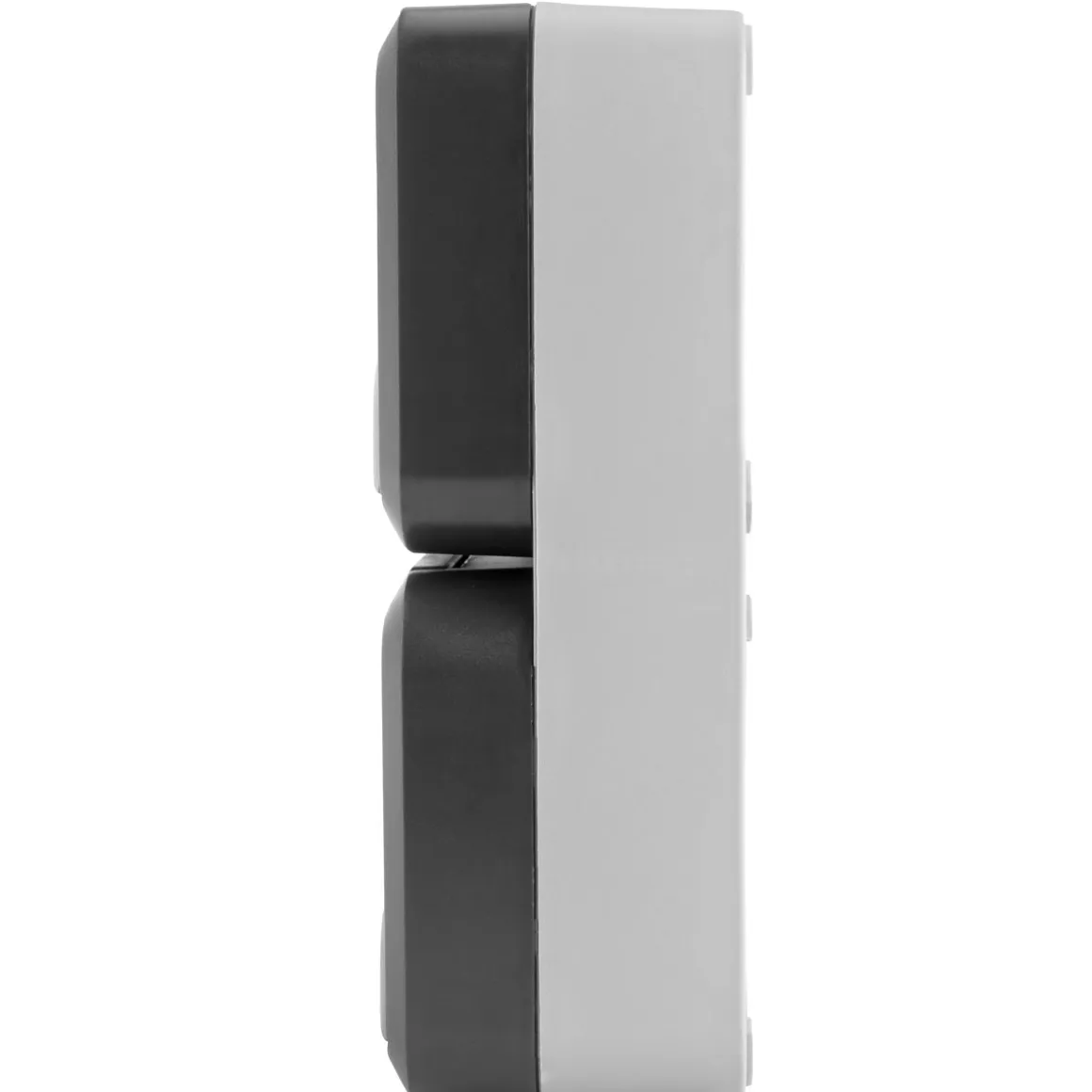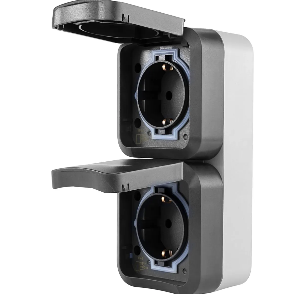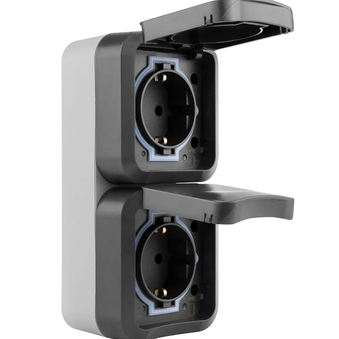 SOLIDE – robustes und bruchfestes Gehäuse in ansprechendem BI-Color-Design aus hochwertigem Spezialkunststoff mit erhöhtem Berührungsschutz, Klappdeckel und biegsamer Tülle für eine einfache Leitungseinführung