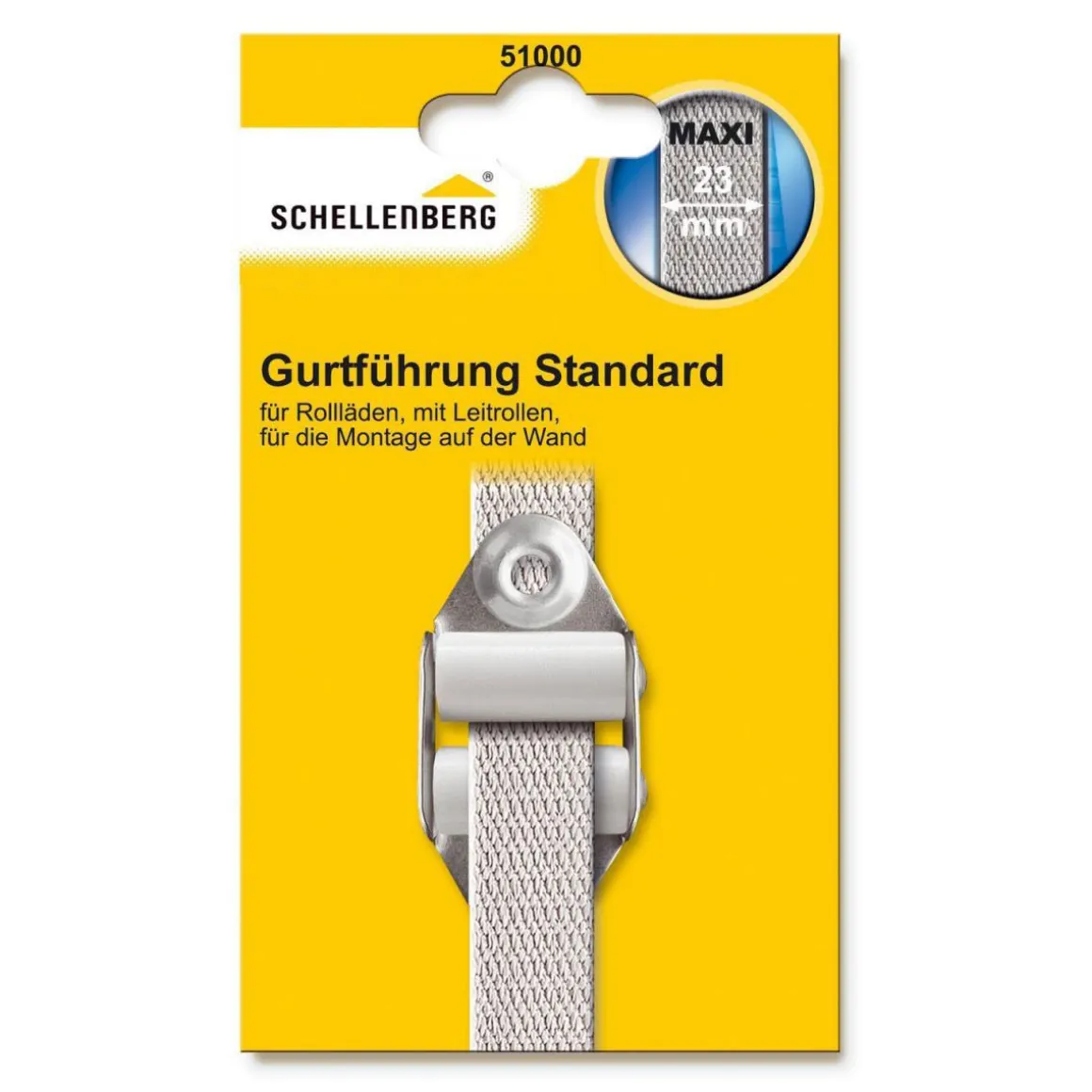 Die Schellenberg Gurtführung STANDARD „Maxi“ eignet sich für die Montage auf der Wand und für Rollladengurte mit einer Breite von 23 mm. Mit ihrem unauffälligen Design passt sie in nahezu jede Wohnumgebung.