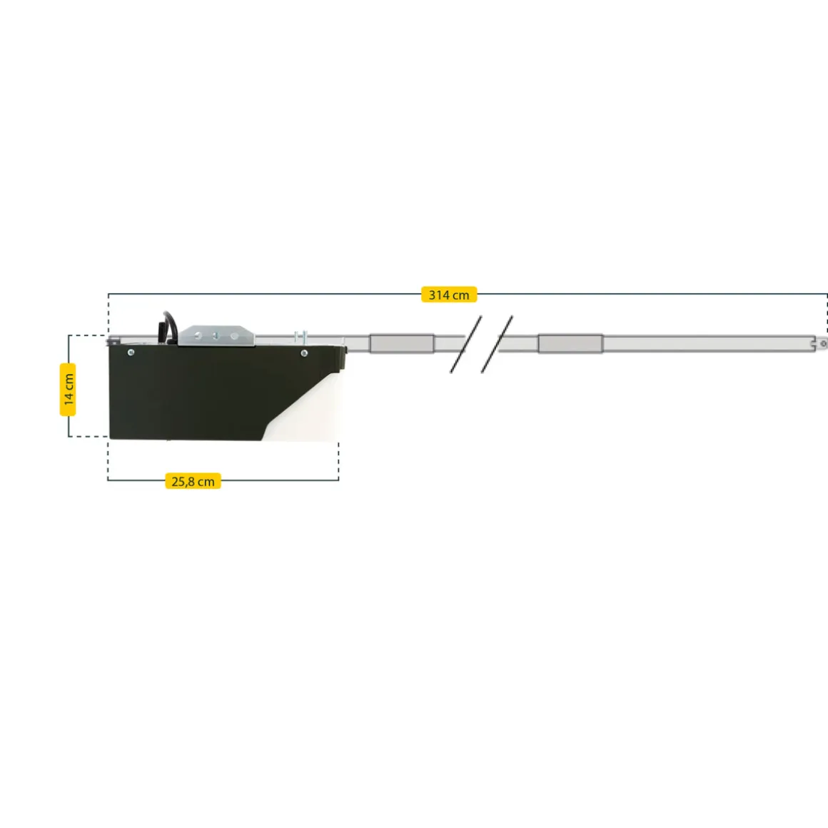 - Lange Führungsschiene mit einer Länge von insgesamt 300 cm bietet Stabilität beim Betrieb des Tores