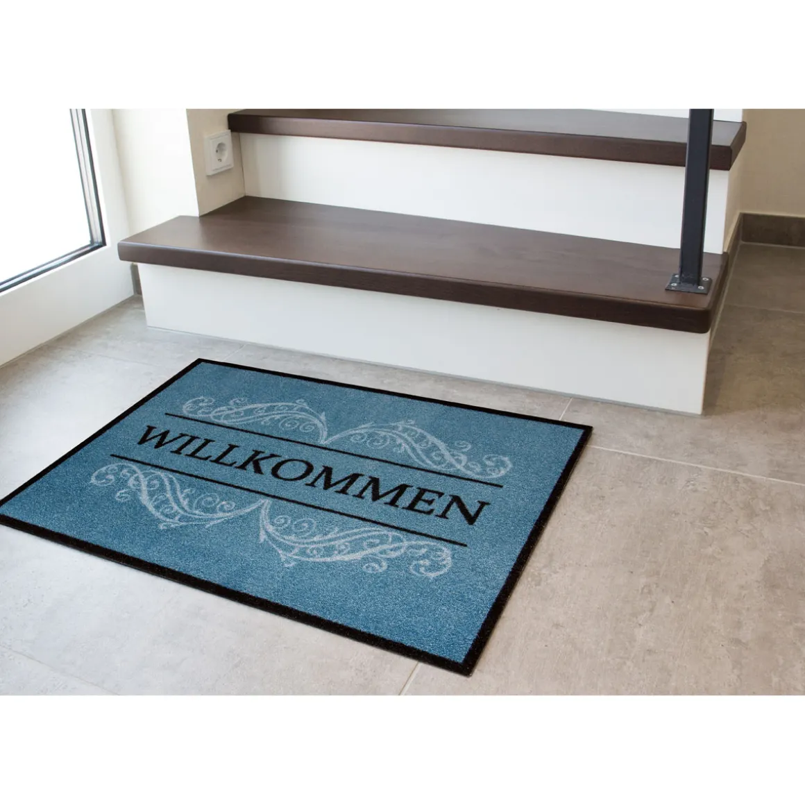 Die Schmutzfangmatte Willkommen in Blau eignet sich perfekt für alle Kunden, die ihre Wohnung oder ihr Haus sauber halten möchten. Besonders praktisch ist sie für Familien mit Kindern oder Haustieren.