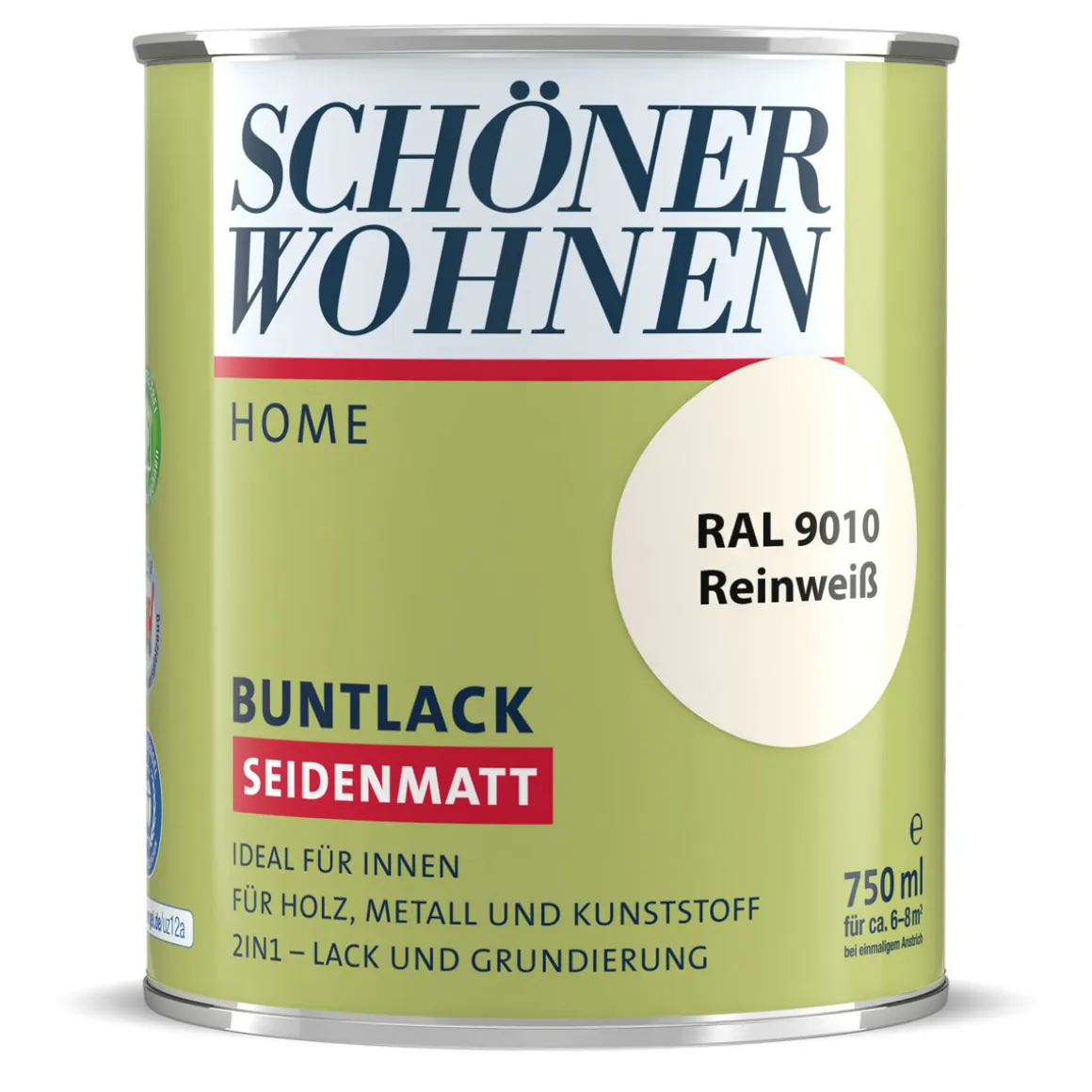 Schöner Wohnen Farbe Buntlack Home Reinweiß seidenmatt 750 ml – Für ein perfektes Finish