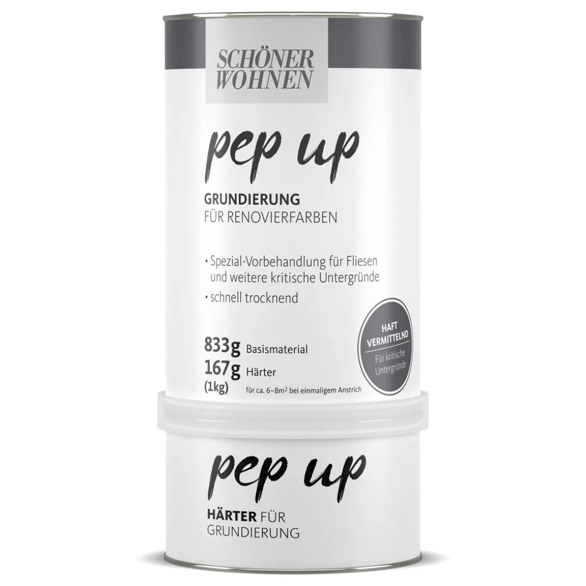 Mit der Schöner Wohnen Farbe pep up Grundierung in Weiß erhalten Sie eine hochwertige Grundierung mit ausgezeichneter Haftung und schneller Trocknung. Die einfache Verarbeitung sowie das Mischungsverhältnis von Basis zu Härter von 5:1 machen sie zur idealen Wahl für alle Renovierungsarbeiten im Innenbereich. Bestellen Sie jetzt online bei !