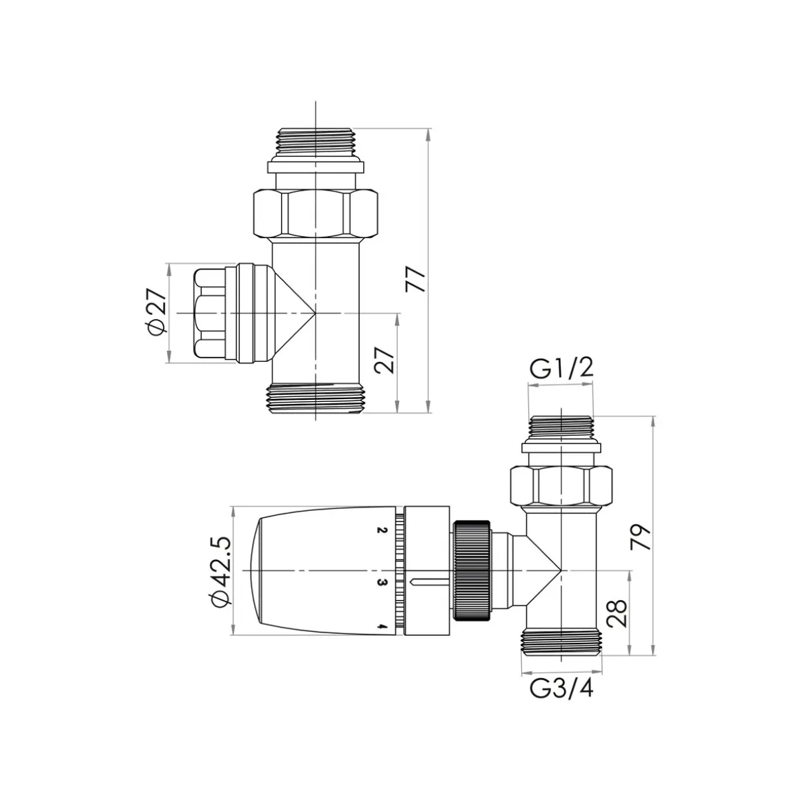 - Inhalt: Design-Thermostatkopf, Vorlauf-Eckventil, Rücklauf-Eckventil