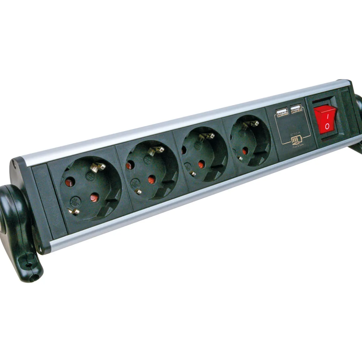 - Seitliche Anordnung der Steckdosen für optimale Zugänglichkeit und platzsparende Nutzung am Arbeitsplatz
