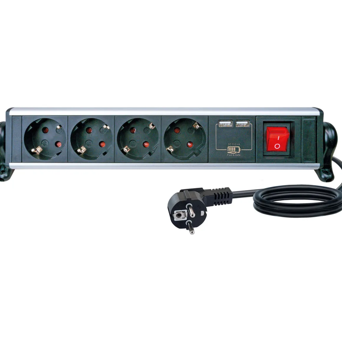 - Vier Schutzkontakt-Steckdosen bieten ausreichend Platz für alle wichtigen Elektrogeräte im Innenbereich