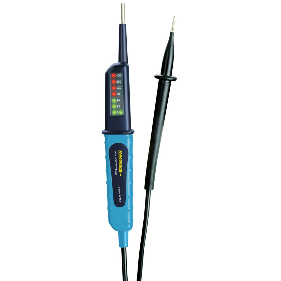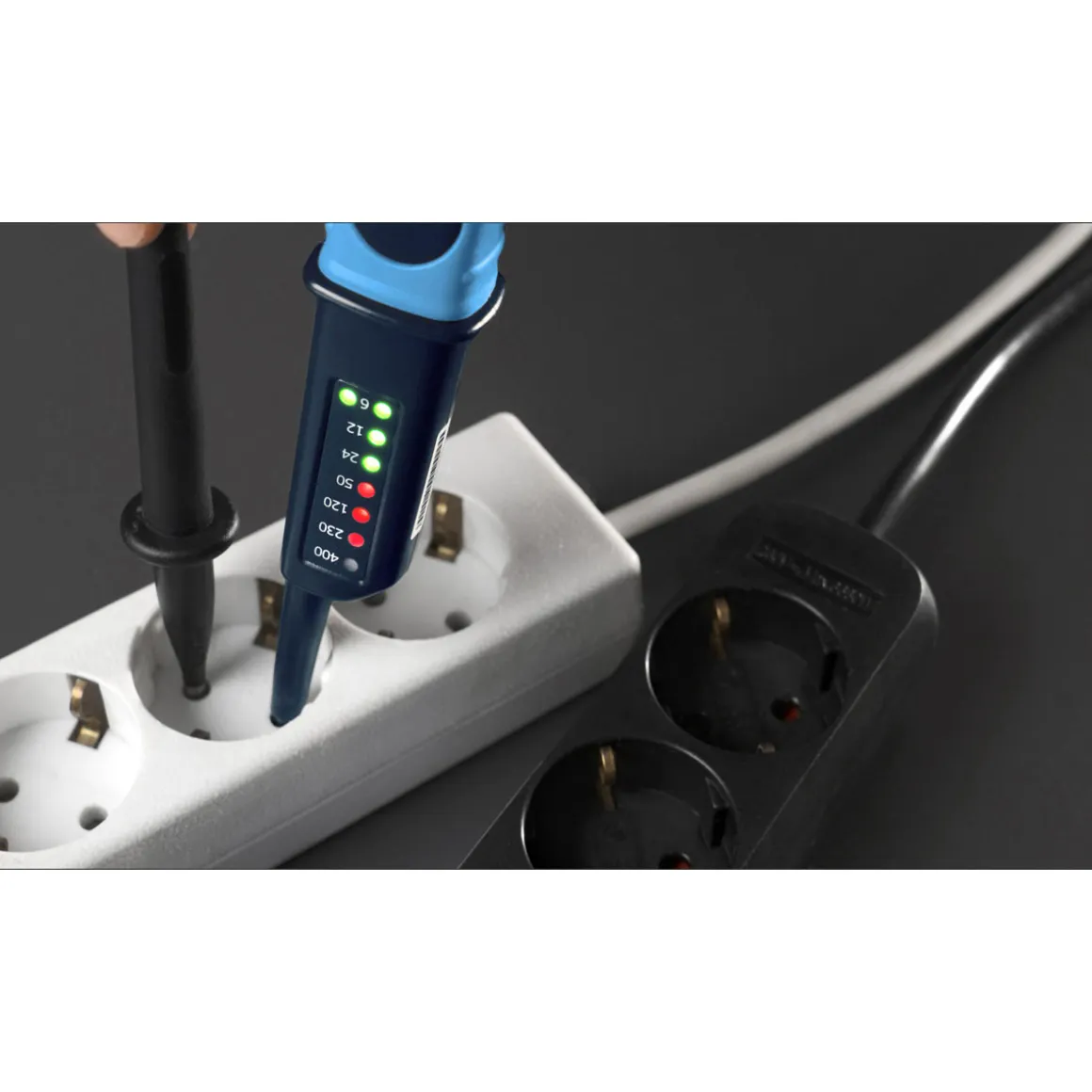 Spannungsprüfer für den Messbereich 6-400 V, mit LED-Anzeige, IP64-spritzwassergeschützt.