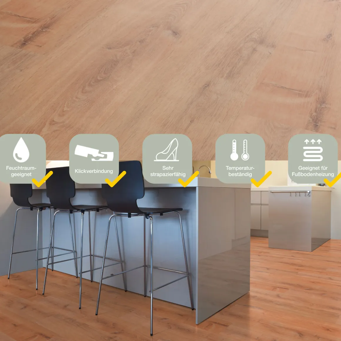 - Ideal für Feuchträume wie Badezimmer oder Küche dank seiner wasserresistenten Eigenschaften.