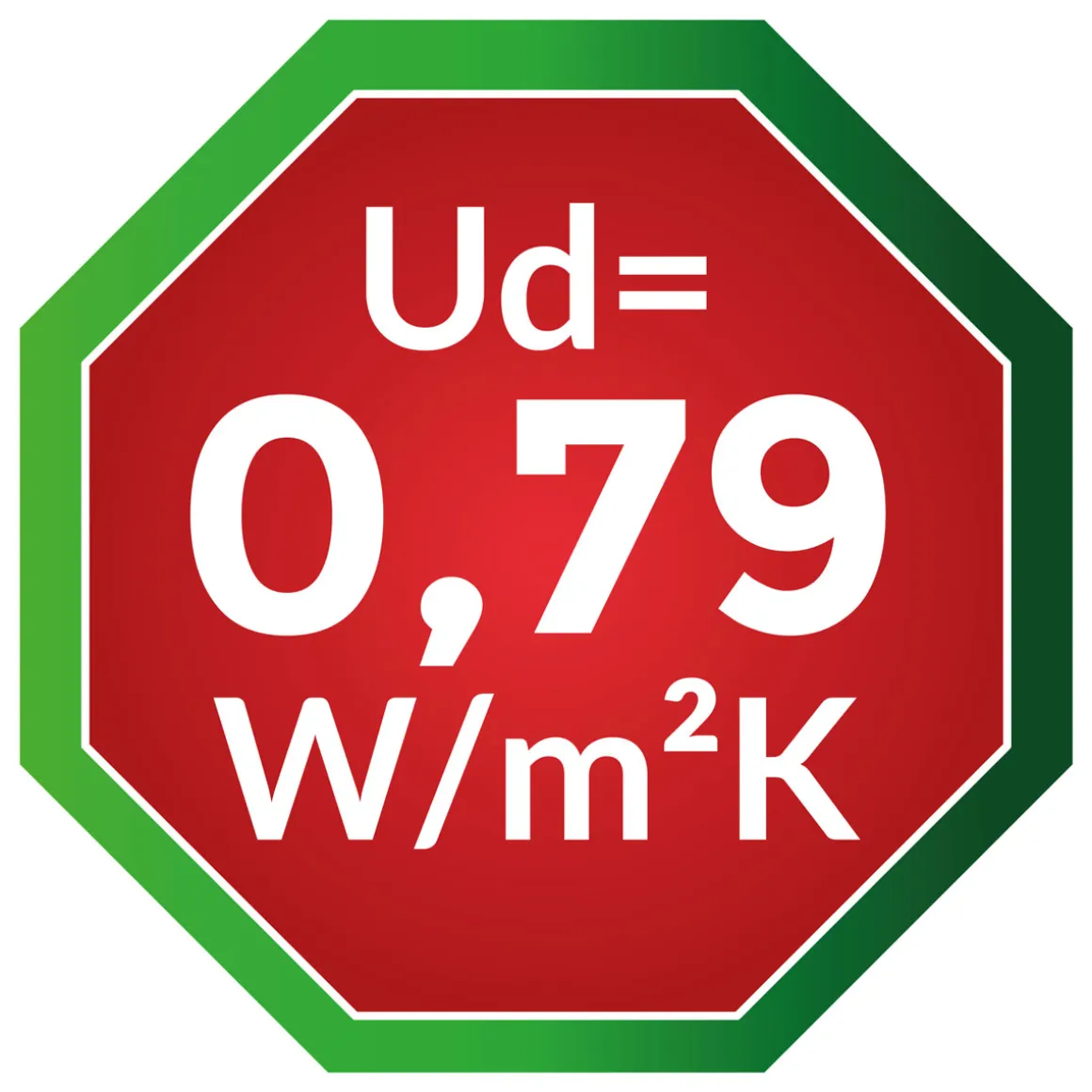 Mit der SplenDoor Premium-Haustür Passivedoor Uppsala entscheiden Sie sich für eine hochwertige Haustür mit modernem Design und optimaler Energieeffizienz. Die umlaufende Dichtung sorgt dafür, dass keine Kälte oder Zugluft ins Haus gelangt. Dank der dreifachen Verglasung mit Sicherheitsglas VSG wird zudem ein hoher Einbruchschutz gewährleistet. Der Ud-Wert von nur0.79 zeigt deutlich den hohen Energiesparfaktor dieser Tür an.