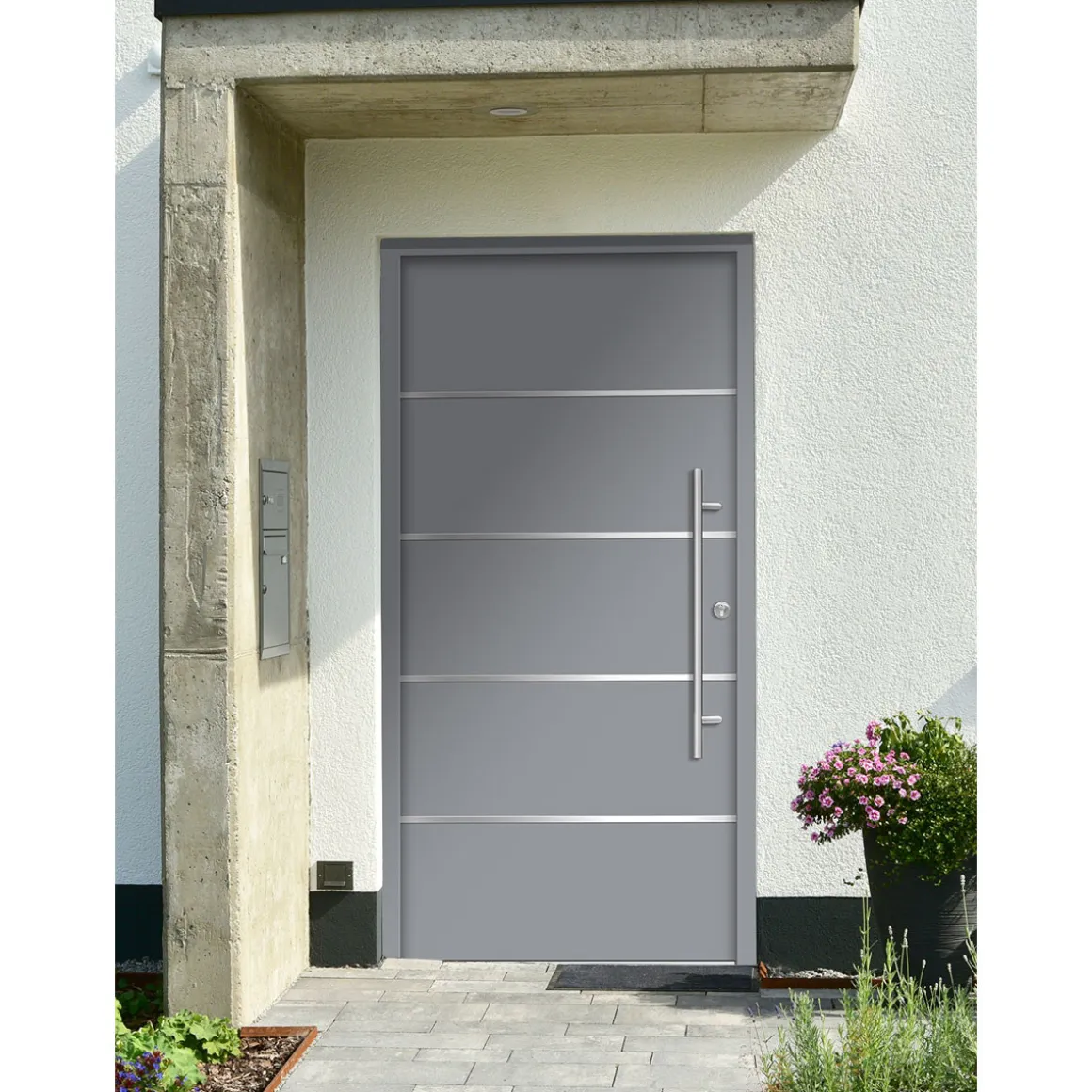 SplenDoor Premium-Haustür Passivedoor Visby RC2 energiesparend einbruchsicher grau 100 x 200 cm rechts
