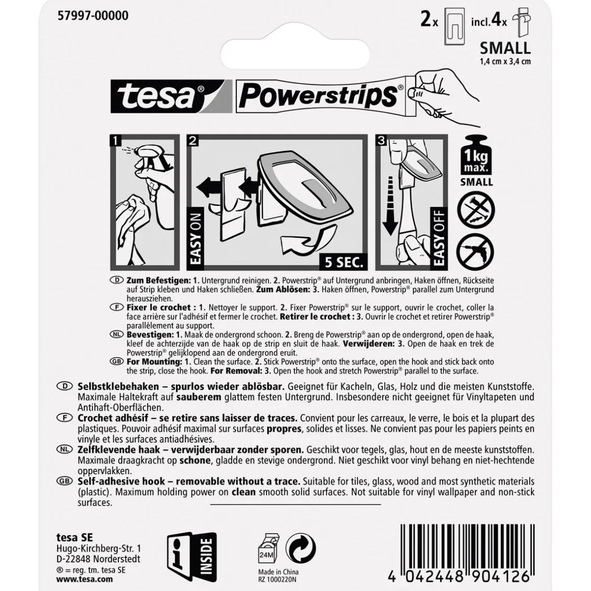 - – Lieferumfang: 2 Haken / 4 Strips Small
