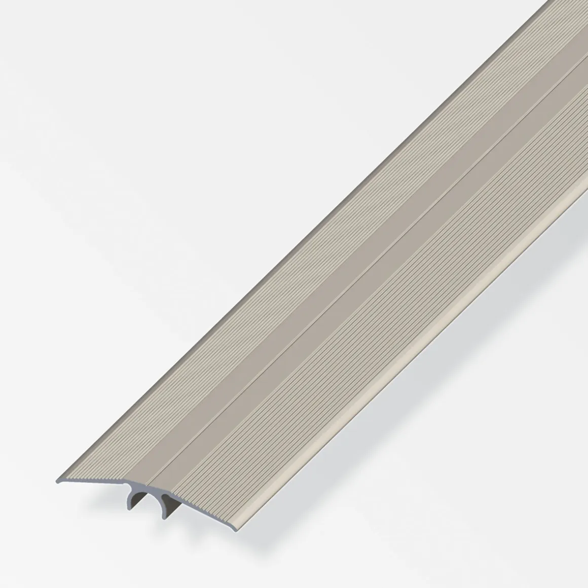 Mit dem Alfer Übergangsprofil Clipstech 46 mm in titan schaffen Sie eine nahtlose Verbindung zwischen unterschiedlichen Bodenbelägen. Das eloxierte Aluminiumprofil ist einfach zu befestigen und eignet sich perfekt für den Einsatz im Innenbereich.