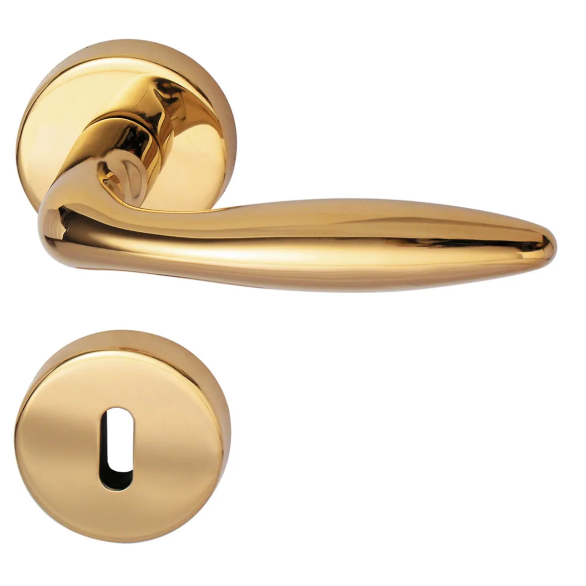- Durchmesser Rosette: Ø 5,5 cm, Lieferumfang: 1 Drückerpaar, 2 Drückerrosetten, 2 Buntbartrosetten, 4 Durchzugsschrauben