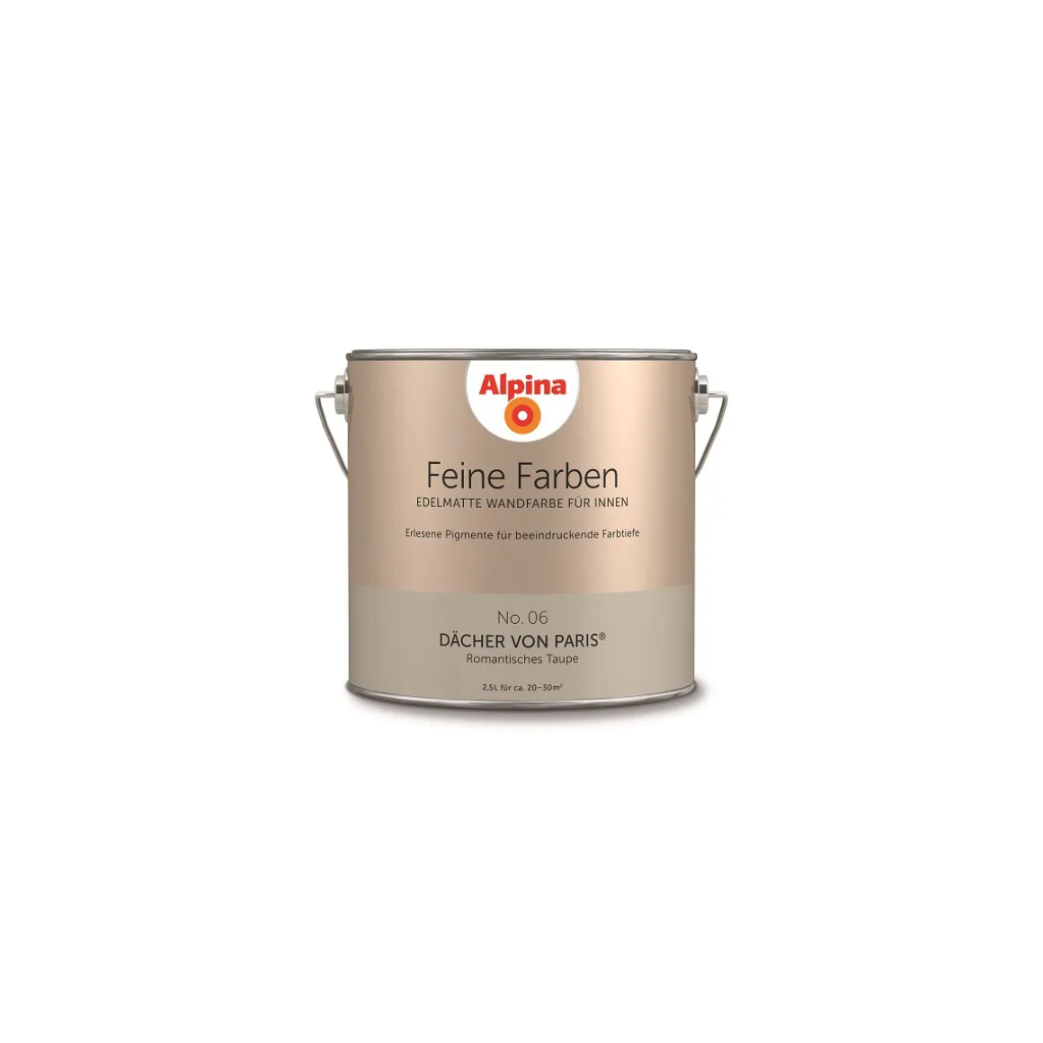 Erleben Sie mit Alpina Feine Farben Dächer von Paris eine edelmatte Wandfarbe, die Ihre Räume in ein romantisches Graubraun taucht. Die hochwertigen Pigmente sorgen für eine beeindruckende Farbtiefe und verleihen Ihren Wänden und Decken einen gleichmäßigen, strapazierfähigen Anstrich. Entdecken Sie jetzt die Eigenschaften dieser besonderen Innenfarbe!