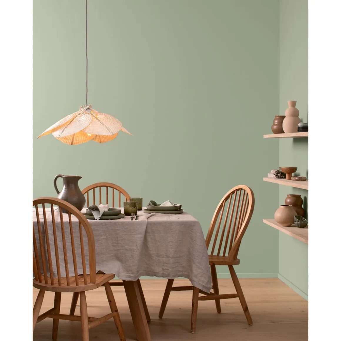 Grün ist die Farbe der Wälder, Bäume und Pflanzen. Mit ihr holst du dir Natur, Lebendigkeit und Frische in dein Zuhause. Das Spektrum von Grün ist vielfältig, denn es liegt genau zwischen der Wärme von Gelb und kühlem Blau. So kannst du je nach Facette und Lichtsituation ganz unterschiedliche Stimmungen erzeugen: Im Wohnzimmer können dunklere Grüntöne den Raum entspannend, warm und gemütlich machen, während frisches Grün gut ins Bad oder das Kinderzimmer passt.