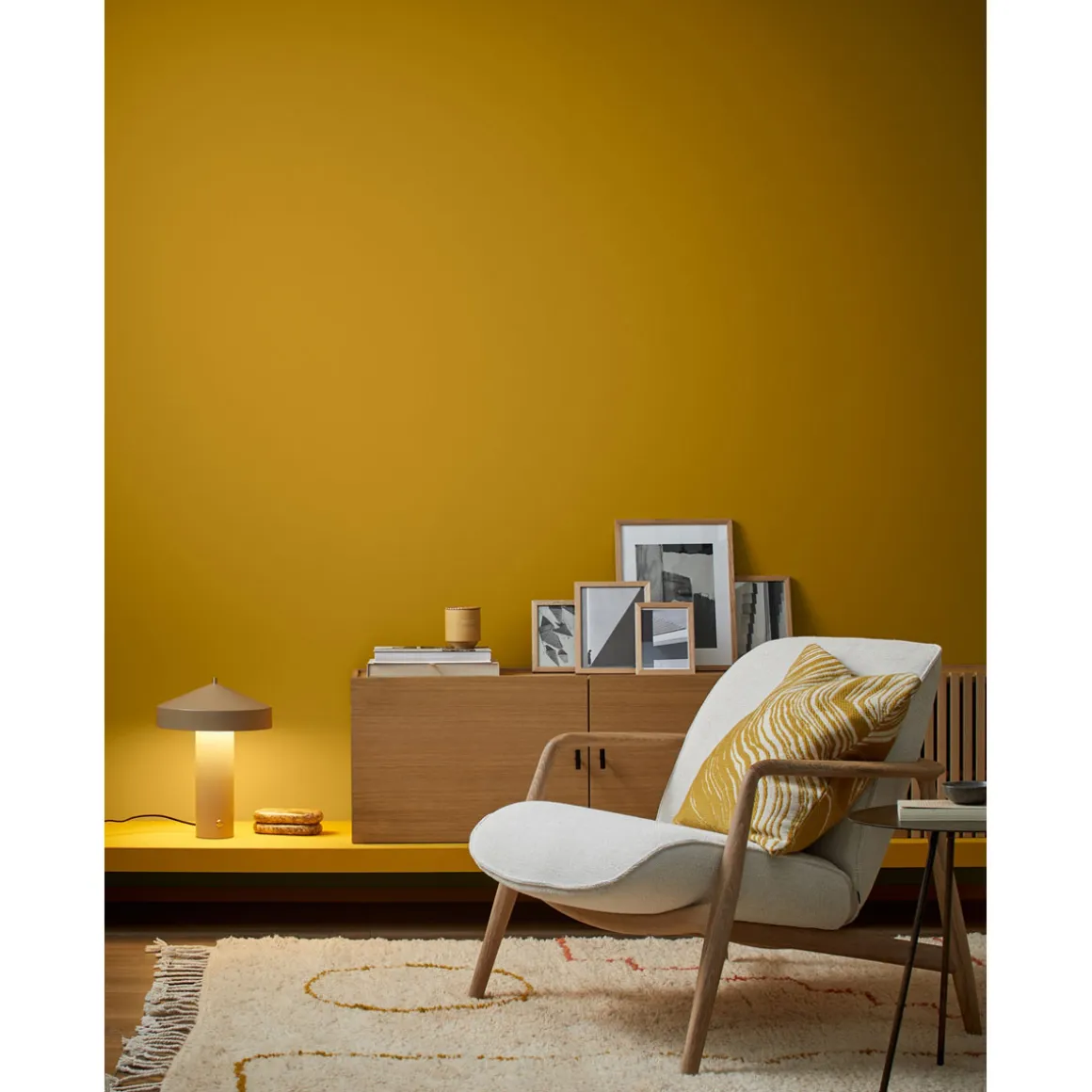 Ockergelb wirkt so beruhigend und ausgleichend, wie du das von einem warmen Erdton erwartest. Besonders elegant in Kombination mit verwandten, zurückhaltenderen Farbtönen wie zum Beispiel Cremebeige.